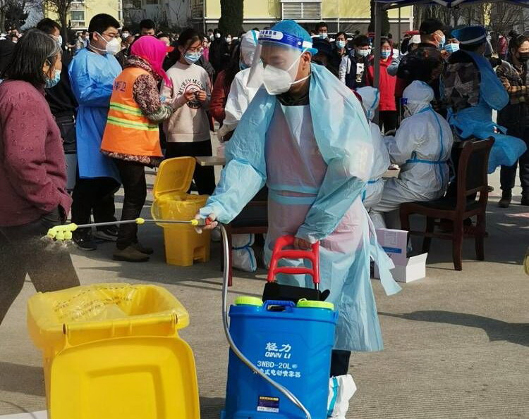 霍正鋼,志愿者隊伍的一員,也是這支志愿服務隊伍中的中堅力量。他,心中有大愛,在海州灣黨支部3月7日發(fā)出“馳援社區(qū),共同抗疫”動員令后,他第一個站出來:“疫情就是命令,防控就是責任。身為黨員,我理應模范帶頭,支持新冠肺炎疫情防控工作。”他不僅是這樣說的,更是這樣做的,在昌圩社區(qū)每一次的核酸檢測中,他專挑“急、難、險、重”的活。比如消殺工作,這是一個體力活,需要背著足足有20公斤重的消毒液,來回不停的走動,不斷的添加消毒液。有幾次,核酸檢測從早上8點一直持續(xù)到晚上8點,足足12個小時,而消殺工作的時長都達到14個小時,不僅是檢測過程中,開始前和結束后的一小時都要消殺到位。14個小時下來,霍正鋼同志穿著密不透風的防護服,里面的衣服濕了又干,干了又濕······。當大家看到他口唇干裂的都掉了皮,問他:“你是沒有喝水嗎?”“不能喝水,忍著吧,喝水就得上側所,耽誤時間,這波病毒隱匿性強,傳播速度快,不能有一絲懈怠?!彼┖竦恼f著。