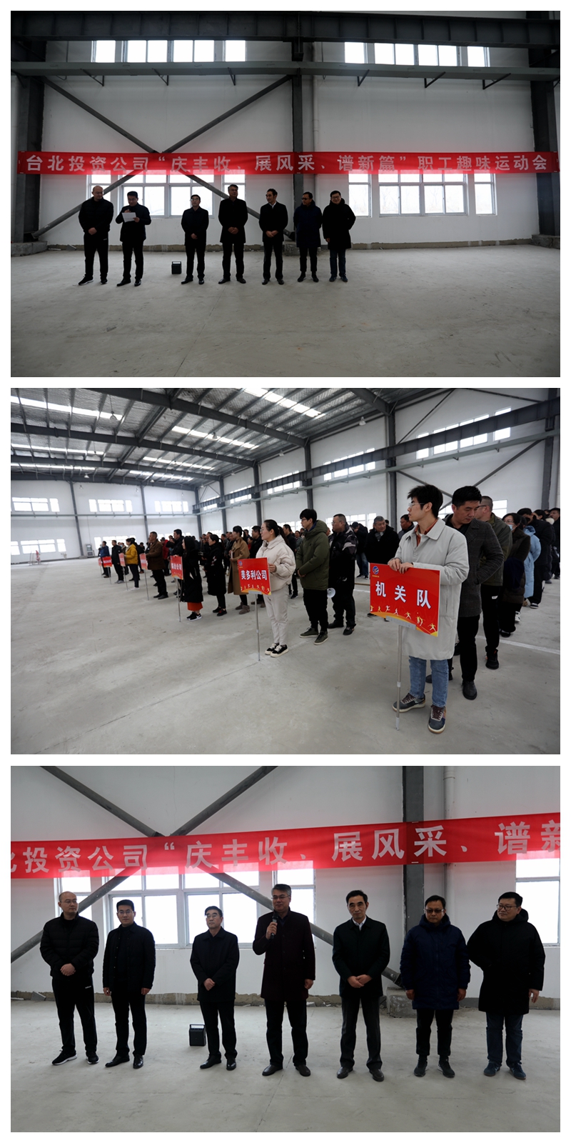 陽光熹微,冬日似金。為喜迎2021年新年的到來,大力弘揚(yáng)團(tuán)結(jié)拼搏,昂揚(yáng)向上、奮發(fā)有為的精神風(fēng)貌,營造生動(dòng)活潑、寬松和諧、積極健康的良好氛圍,12月28日下午,投資公司在海州灣公司9號(hào)廠房舉辦“慶豐收、展風(fēng)采、譜新篇”迎元旦職工趣味運(yùn)動(dòng)會(huì)。本次趣味運(yùn)動(dòng)會(huì)分為拔河、同心擊鼓、企鵝漫步、快樂點(diǎn)球等四個(gè)項(xiàng)目,分為兩天舉行,本日舉行拔河、同心擊鼓兩項(xiàng)比賽。