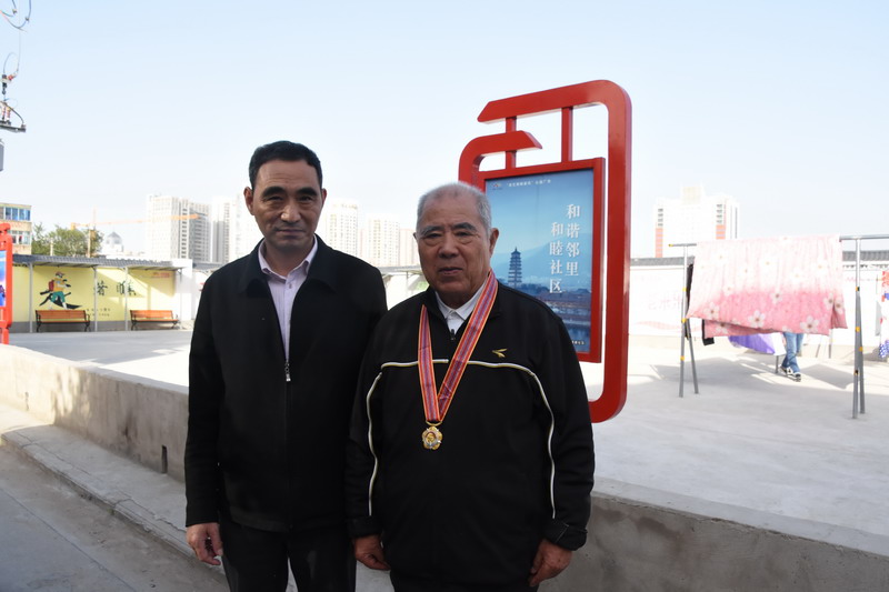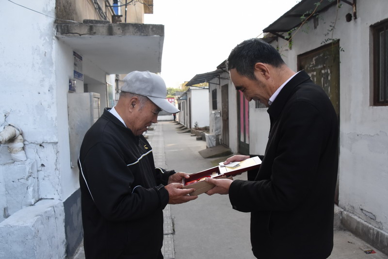 解韻波同志今年83歲,1956年1月參軍,那年19歲,同年6月經(jīng)過短期高強(qiáng)度培訓(xùn),作為無線電通訊兵出國抗美援朝。1959年西藏達(dá)賴集團(tuán)發(fā)動(dòng)叛亂,剛回國不久的解韻波作為無線電技術(shù)兵種隨即跟隨大部隊(duì)入藏平叛。至今他仍保留著抗美援朝軍功章,入藏平叛軍功章、紀(jì)念章等。1962年退伍分配至臺(tái)北鹽場(chǎng)工作,1997年退休。今天慰問的時(shí)候,在鄰居們的簇?fù)砗推G羨之中,還沒進(jìn)家門,鄰居們就迫不及待地要求打開“紀(jì)念章”一睹風(fēng)采。紀(jì)念獎(jiǎng)?wù)聮煸诶蠎?zhàn)士胸前,一眾鄰里夸贊不斷:這份榮譽(yù)沉甸甸的。這份榮譽(yù)是拿命換來的。這是不得了的榮譽(yù)啊。這樣的老兵是我們的寶貝哦,我們要尊敬啊。……就在小區(qū)活動(dòng)廣場(chǎng)上,老戰(zhàn)士與大家暢談起保家衛(wèi)國光榮的戰(zhàn)斗經(jīng)歷,烽煙往事歷歷在目。退伍后,不褪軍人本色,幾十年如一日立足家鄉(xiāng)建設(shè),為臺(tái)北鹽場(chǎng)奉獻(xiàn)青春,為國家建設(shè)貢獻(xiàn)力量。大家對(duì)解韻波老戰(zhàn)士的革命戰(zhàn)斗和建設(shè)祖國的歷程表示由衷贊嘆和敬佩。