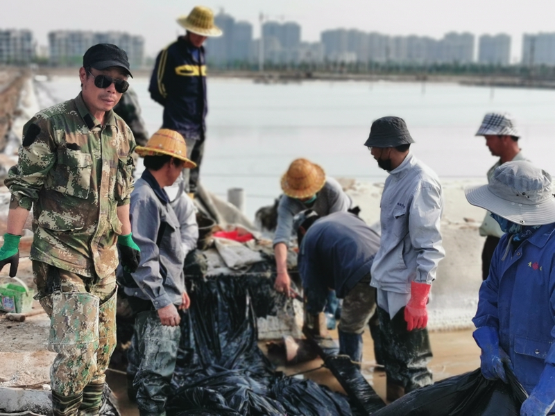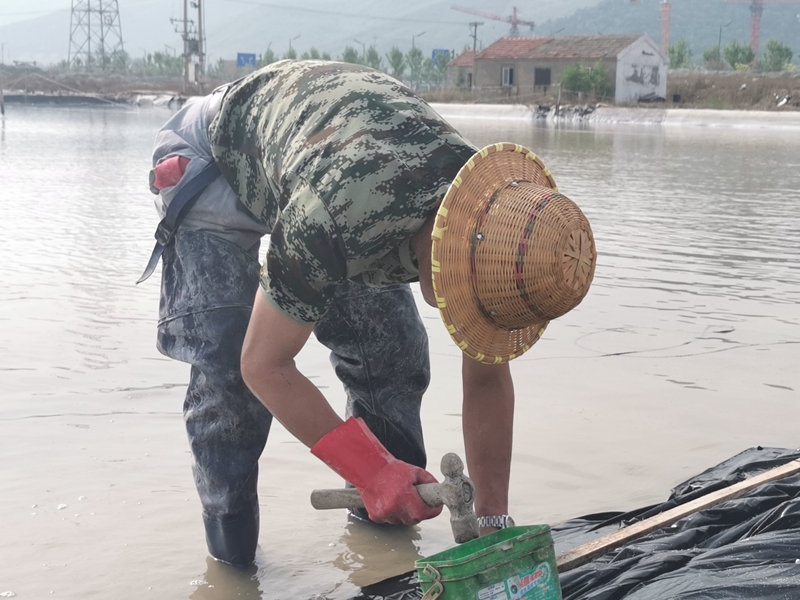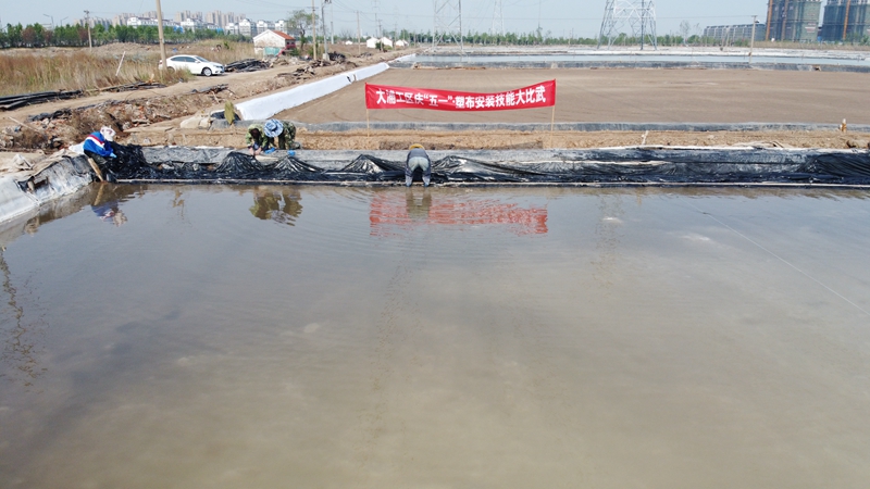 不到半天時(shí)間完成了數(shù)百米的塑布安裝