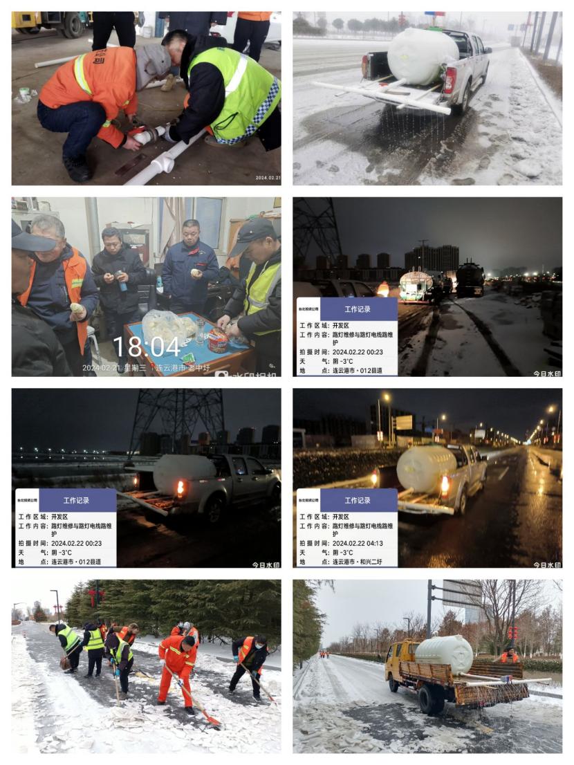 21日夜晚降雪漸止,該黨支部出動四臺車輛,按照設(shè)計好的路線多次往返于花果山大道、黃海大道、東方大道等開發(fā)區(qū)范圍內(nèi)主次干道噴灑融雪劑。在公司負責(zé)人的帶領(lǐng)下,已連續(xù)3日吃住在單位靠前指揮,參加一線掃雪除冰活動。喬以成、袁桂誠等老同志隨車同行隨時解決技術(shù)難題保障除冰工作順利進行。由于路面積雪嚴重需要一便又一便的拋灑,該黨支部又合理安排人員車輛上半夜和下半夜不間斷噴哂保障路面不結(jié)冰,全體黨員干群頂著寒風(fēng)、排隊抽取防凍液時踩著光滑結(jié)冰的路面在低溫下瑟瑟發(fā)抖,為了第二天人們的順利出行他們也是拼盡了全力,再一次展示了鐵軍的光輝形象。