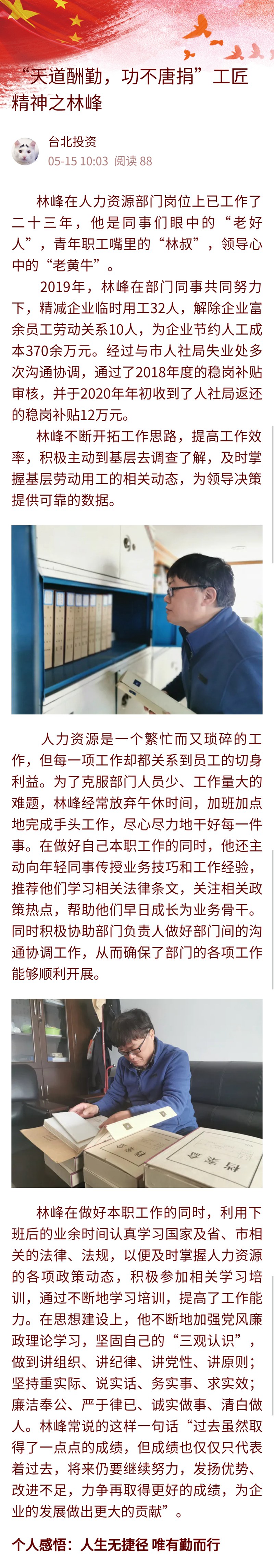 【匠心筑夢 實干興企】“天道酬勤,功不唐捐”工匠精神之林峰
