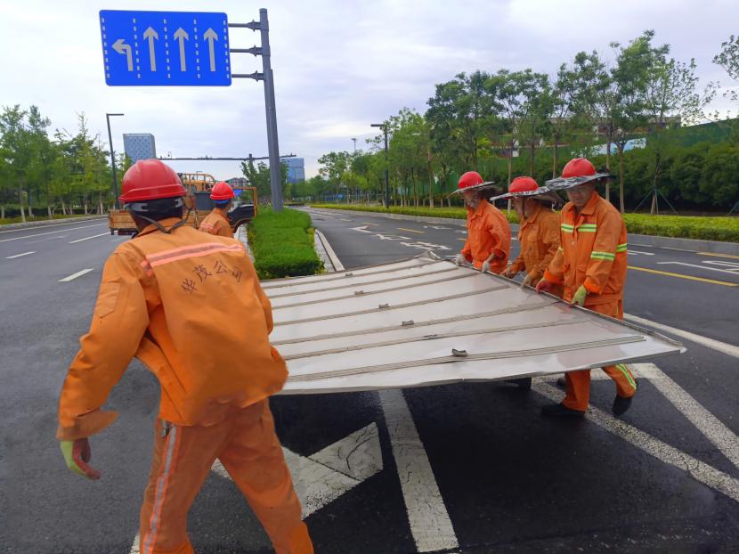 天蒙蒙亮,盛達(dá)市政道路維修班組人員便到崗,對(duì)轄區(qū)內(nèi)道路、排水設(shè)施進(jìn)行全面檢查,及時(shí)將斷枝的樹木,吹飛的廣告牌,吹翻的企業(yè)圍擋等進(jìn)行清理,及時(shí)疏通被樹葉、淤泥、垃圾堵塞的雨水井蓋,巡查發(fā)現(xiàn)有破損井蓋的立即上報(bào)并迅速修復(fù),同時(shí)在危險(xiǎn)地段設(shè)置警戒線、錐形桶,全力保障行人和車輛的通行安全。