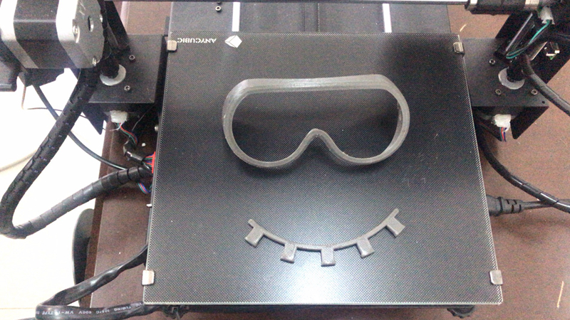 2月17日晚7時(shí),第一件3D打印護(hù)目鏡樣品制作完成。經(jīng)過調(diào)整鏡架大小、安裝高度、松緊帶彈力、實(shí)現(xiàn)護(hù)目鏡與口罩的配合等,完成定型設(shè)計(jì),并可根據(jù)使用者面部大小個(gè)性化定制。