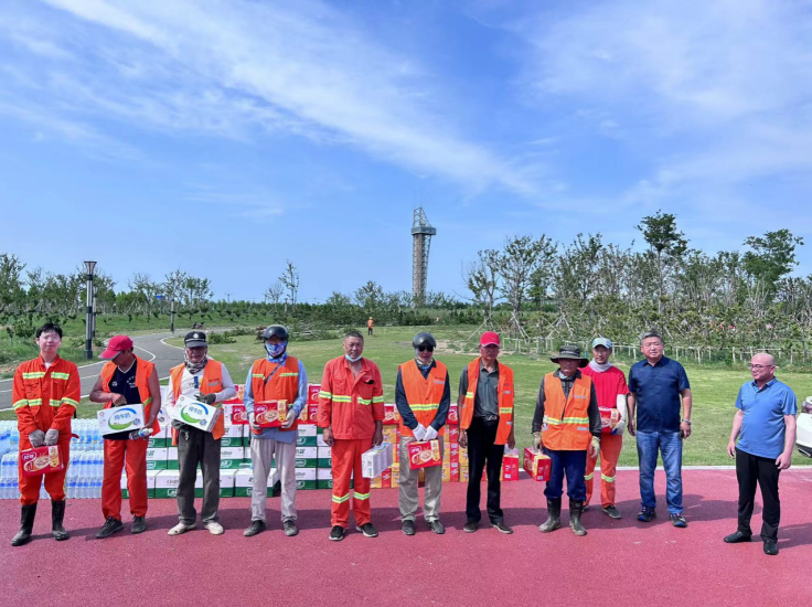 在現(xiàn)場,為他們送去礦泉水、八寶粥、冰紅茶、牛奶等防暑降溫物品和生活用品。莊董事長與員工們親切交談,關(guān)心詢問員工作和生活情況,并叮囑要合理調(diào)整工作時間,妥善做好員工高溫防暑降溫工作。接到領(lǐng)導(dǎo)遞到手上的慰問品,聽著領(lǐng)導(dǎo)的問候和囑咐,員工們心懷感激,競相表示要克服酷暑高溫,堅守崗位,盡職盡責(zé),以飽滿的工作熱情為企業(yè)發(fā)展貢獻(xiàn)力量。(孫祥艷)