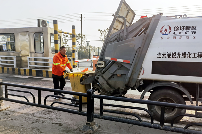 徐圩新區(qū)地域面積較大,廠區(qū)單位分布分散,形成集中清運點之間的跨度大、距離遠,從最東端的虹洋港口到最西端242省道邊的人文園,兩點相距就有15公里之多,面廣量大。為及時高效完成垃圾清運工作,羅海軍每天凌晨4點他對作業(yè)車輛進行仔細檢查,隨后召開班前會議,他倡議全班工作人員:“吃在車上,干在路上?!睜幏謯Z秒,確保工作完成更到位、更扎實。