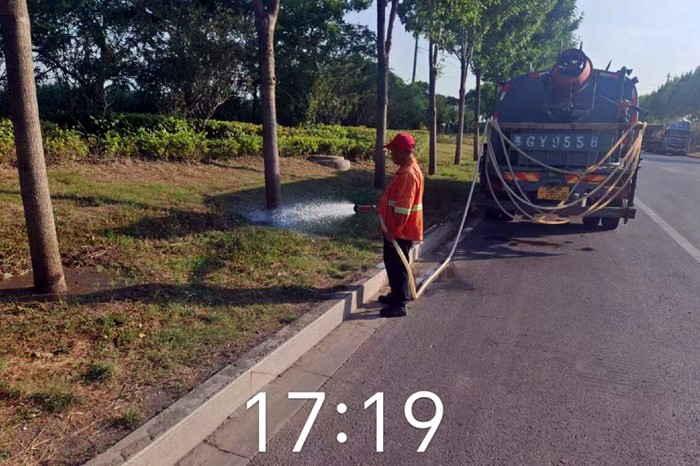多舉措,全力抗旱保苗。該分公司二個班組,以科學方式進行澆灌作業(yè),避開高溫時段澆水灼傷綠植根系。傍晚采用“人歇機不歇”的方式,對新栽植苗木、受旱較嚴重的苗木優(yōu)先、多次澆灌,做到澆足澆透澆勻。對于喬木行道樹、綠化帶較密的區(qū)域,工人們采取2到3人一組徒手拖拽膠皮水管挨棵澆灌,多種形式相結(jié)合的措施,對園區(qū)綠地、綠化帶進行循環(huán)澆水。力爭做到抗旱不停步,澆水無死角,確保綠化苗木安全度夏。
