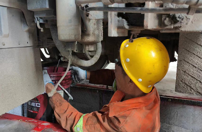? ? ? ?入夏以來,保養(yǎng)和維修的環(huán)衛(wèi)車輛較平時都有所增加,給維修班組增加了不小的壓力,大家整天都處于“戰(zhàn)斗”狀態(tài)。高峰時期,一天進車間維修保養(yǎng)的大、小車輛達8臺。在一處維修現場,班長丁寶清與維修工陳寬軍正在貓著腰,歪著頭,對清掃車油濾部件進行檢修、更換,高溫天氣,維修車輛對工人身體素質確實是一種嚴峻的考驗,不一會兒,丁寶清額頭上冒出的汗珠沿著臉頰、下巴往下滴,他抹了抹,手上油漬和污垢在臉上留下了一道道黑痕,他們用實際行動詮釋著愛崗敬業(yè)的真諦。經過1個多小時的兩人默契配合,順利完成此次保養(yǎng)任務。休息片刻,又投入到新一輪的車輛檢修中 。
